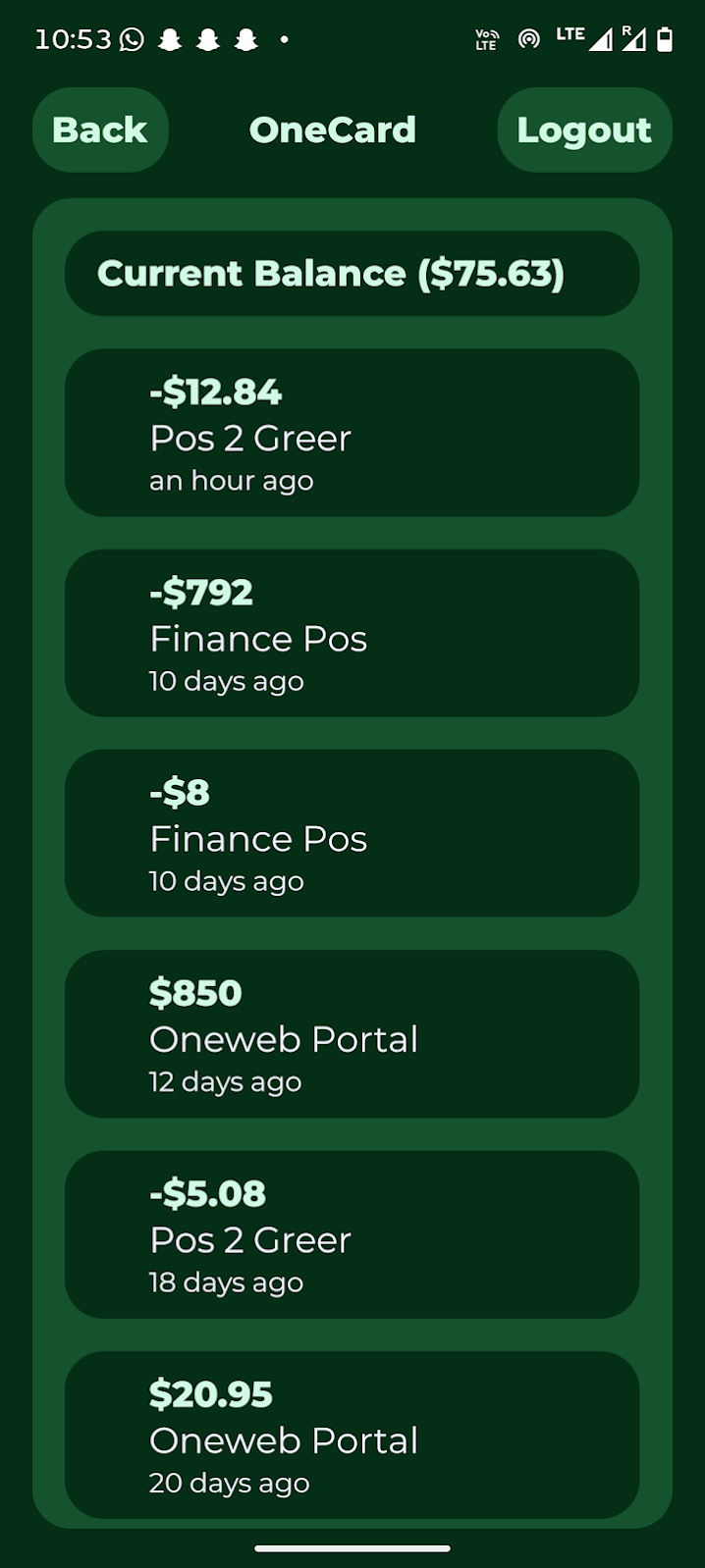 - OneCard Activity (internal financial account used on campus)