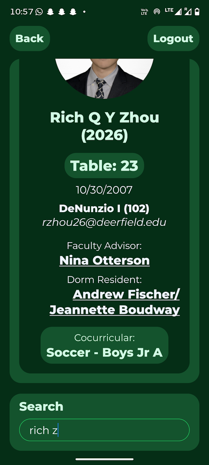 - Information such as Faculty Advisor, Dorm Resident, Sitdown Tables, Cocurriculars, etc were clickable links (as opposed to plaintext)