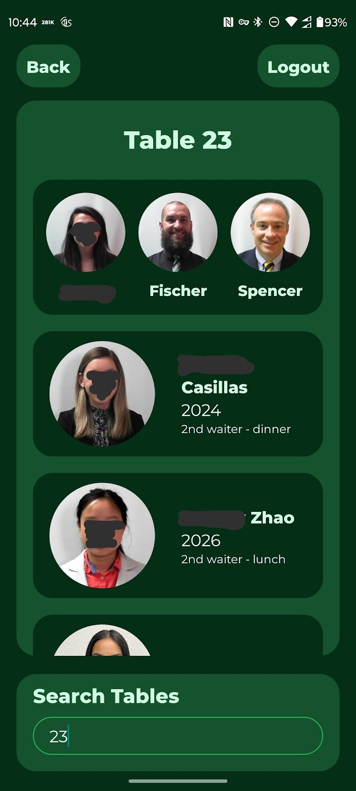 - Sitdown rosters could be looked up by table number (as opposed to clicking on a student’s table)